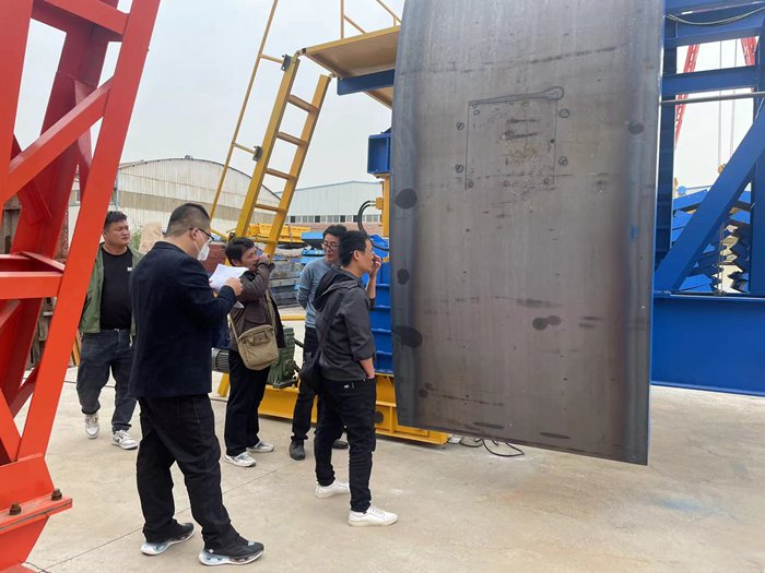 2023年4月13日,中鐵六局集團(tuán)有限公司沈陽地鐵一號線1標(biāo)項目經(jīng)理部檢查驗收專家組蒞臨我廠,對訂購我廠生產(chǎn)的二襯臺車進(jìn)行檢查測量驗收。在為期一天的驗收工作中,通過聽取現(xiàn)場匯報,實(shí)地測量,調(diào)試、繪圖3D模擬,對我廠的二襯臺車進(jìn)行了細(xì)致的檢查驗收。
