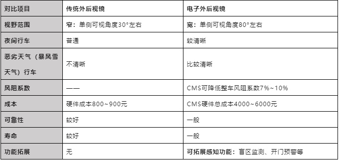圖表8. 傳統(tǒng)外后視鏡與電子外后視鏡對比