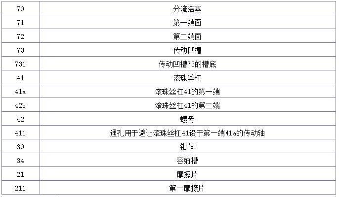 - 創(chuàng)新點(diǎn):分流活塞設(shè)計(jì)成兩個(gè)端面,端面上設(shè)有分流凸起,能夠分流驅(qū)動(dòng)力,優(yōu)化摩擦片受壓情況,避免因受力不均導(dǎo)致制動(dòng)性能下降。3. 具體技術(shù)細(xì)節(jié)