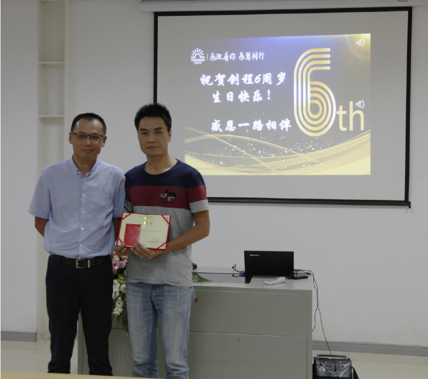 緊接著,活動進(jìn)入了“資深員工授章”環(huán)節(jié)。創(chuàng)程的今天離不開每一個創(chuàng)程人的努力付出。他們用自己的青春,伴著創(chuàng)程一起成長。在創(chuàng)程六周年這個特別的日子里,特甄選了入職三周年、四周年、五周年的資深員工共計37名,公司專門為這些多年與創(chuàng)程同舟共濟(jì)、不離不棄的員工頒發(fā)了精致的徽章,激勵每一位為創(chuàng)程默默付出的員工。今后每年的9月13日,公司都將為入職達(dá)到年限的員工頒發(fā)榮譽徽章。