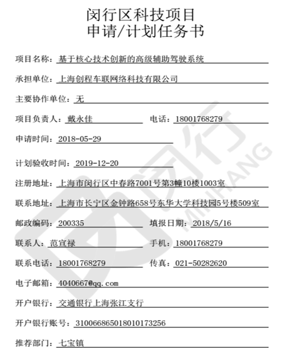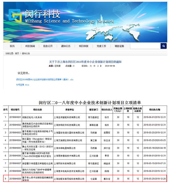 2018年9月6日,我司“基于核心技術(shù)創(chuàng)新的高級(jí)輔助駕駛系統(tǒng)”經(jīng)過(guò)上海市閔行區(qū)科委專家評(píng)審,獲得專家的一致好評(píng),已于9月6日通過(guò)項(xiàng)目立項(xiàng),項(xiàng)目立項(xiàng)后將獲得閔行科委資助資金30萬(wàn)元。