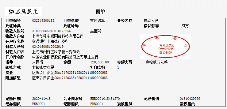 2020年9月30日,閔行區(qū)科委組織有關(guān)專家,對我司承擔(dān)的“基于核心技術(shù)創(chuàng)新的高級輔助駕駛系統(tǒng)”項目(編號:2018MH009)進行了驗收,經(jīng)過專家組討論,我司該項目資料齊全,專項資金使用合理,完成了計劃任務(wù)書設(shè)定的績效指標(biāo),同意項目通過驗收。11月份,我司已收到項目尾款十二萬元整。