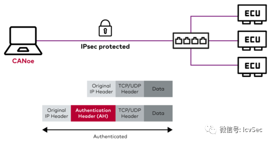 通過這種方式,您可以實現(xiàn)經(jīng)典的保護目標,如機密性、真實性和完整性。通過對IP層的保護,實現(xiàn)了以上各層的保護目標。IPsec協(xié)議的使用實現(xiàn)了對一些/IP、DoIP、TLS和HTTP等較高層協(xié)議的透明保護。Security Manager提供了一個包含IPsec協(xié)議中最重要元素的IPsec堆棧: