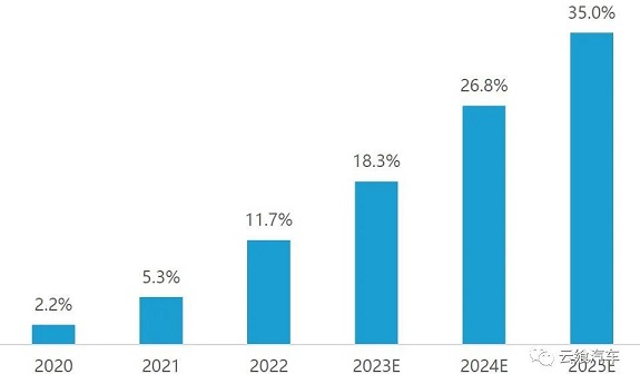 由此可知,在汽車智能化的趨勢(shì)之下,智能座艙的相關(guān)功能已經(jīng)逐漸成為了人們購車因素中的重要決定成分。但由于當(dāng)前汽車市場(chǎng)中對(duì)于智能座艙的功能體現(xiàn)并未有具體的標(biāo)準(zhǔn),也正是因無量化的指標(biāo)導(dǎo)致了各主機(jī)廠在其推出的車型中所搭載的座艙功能種類繁多且水平不一。在這繁且雜的市場(chǎng)環(huán)境中,2022年,我國乘用車智能座艙的市場(chǎng)進(jìn)一步得到提升其滲透率達(dá)到了11.7%,同年,新能源汽車的滲透率為25.6%。