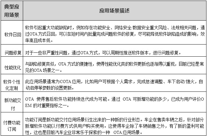 從軟件運營管理的維度 OTA 的典型應(yīng)用場景如下表 2-2 所示。