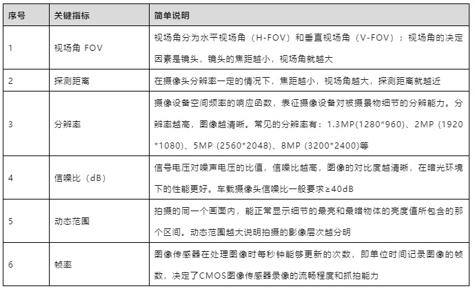 圖表3. 車載攝像頭關(guān)鍵參考指標(信息來源:《QCT/T 1128 汽車用攝像頭》、公開資料整理)
