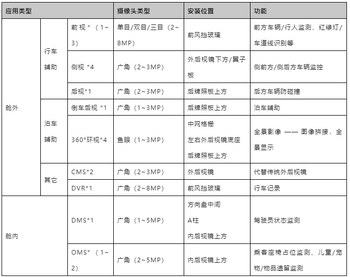圖表5. 車載攝像頭主要應(yīng)用場景分析(信息來源:公開資料整理)