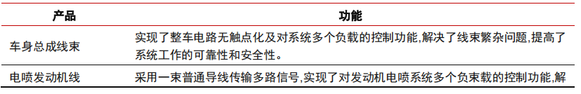 表1:汽車線束主要線束產(chǎn)品及基本功能