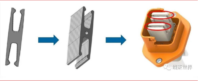 圖13:多片疊加的刀叉型端子結(jié)構(gòu)示意圖