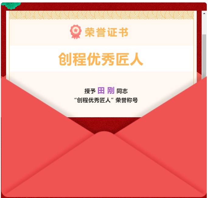 2023年第二季度評優(yōu) —— 創(chuàng)程優(yōu)秀匠人【田剛】